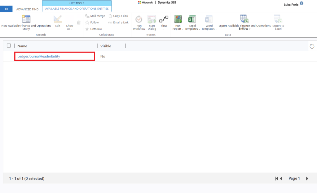 - From the Look for dropdown, select Available Finance and Operations entities, apply additional filters as needed, and click Results.