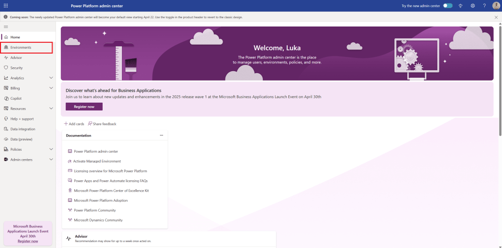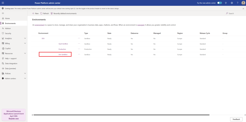 - Choose the Environment linked to your Dynamics 365 F&O instance.